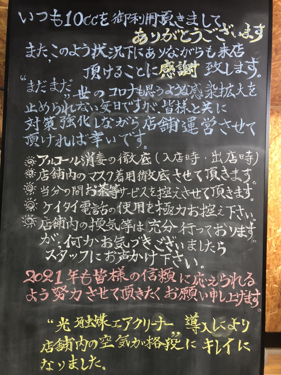 国の要請で営業許可は出ておりますが、10ccとして最良最善を模索しながらですが、営業させて頂いております。